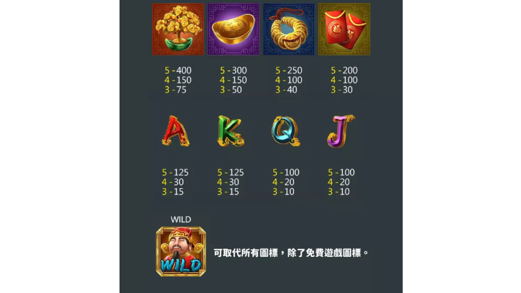 • 財神爺圖案:核心符號,觸發高額獎勵功能。